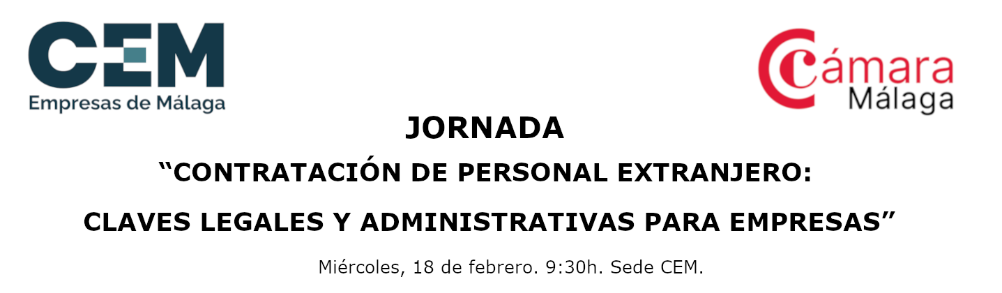 En el marco de las actividades que desarrollamos junto a la Confederación de Empresarios de Málaga para impulsar la competitividad empresarial, te invitamos a una nueva jornada sobre el "Contratación de personal extranjero: Claves legales y administrativas para empresas", prevista para el próximo miércoles 18 de febrero a partir de las 9:30h., con la colaboración del Servicio Andaluz de Empleo, la Oficina de Extranjería de…